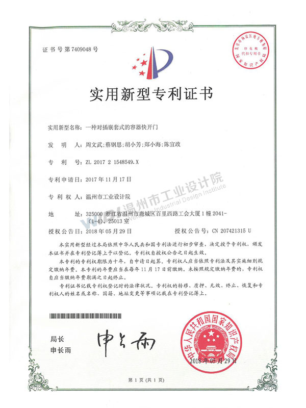 一種對(duì)插嵌套式的容器快開(kāi)門(mén)